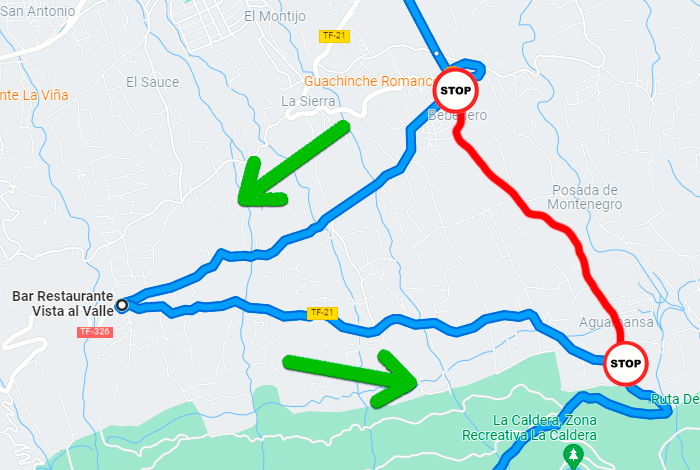 ¡ATENCIÓN! Si vas a subir desde La Orotava, debes evitar la subida que te recomienda Google Maps como atajo: el Camino Bebedero (Aguamansa). Este tramo de calle es muy pronunciado y la furgoneta podría sobre calentarse y averiarse.